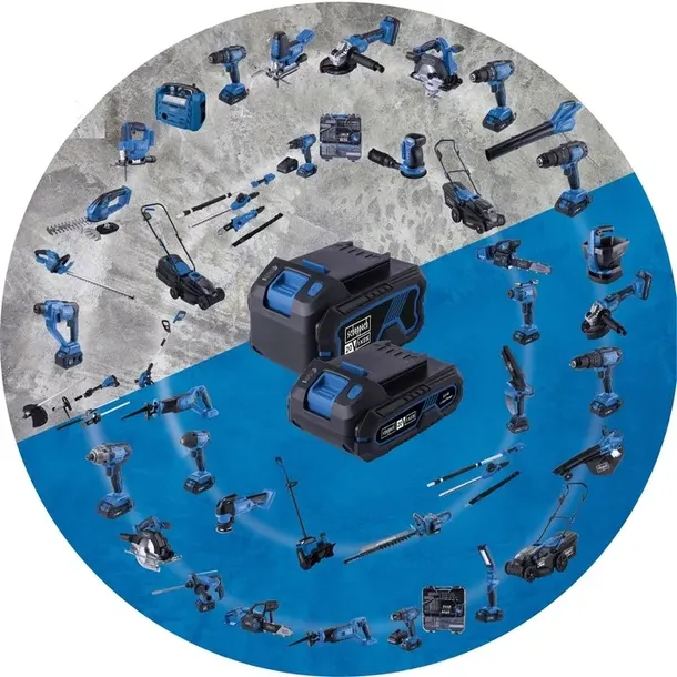 *w oparciu o akumulator rozruchowy 2Ah 20V IXES SCHEPPACH od tego sezonu 2024!! możesz dokupić ok. 50 różnych elektronarzędzi do domu, warsztatu i ogrodu zasilanych tym samym akumulatorem! Te same baterie zasilą także rozruch elektryczny nowych kosiarek spalinowych Scheppach