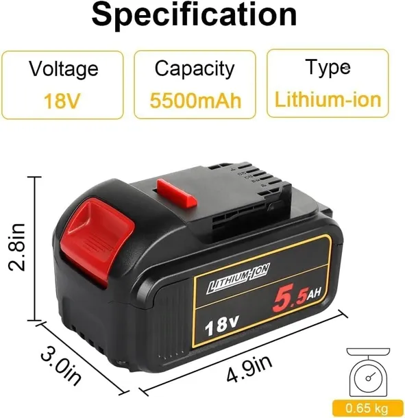 - 【Bezpieczny i niezawodny】Zapasowy akumulator 18 V 5,5 Ah zapewnia ochronę przed nieprawidłowym napięciem, przeładowaniem, przeciążeniem, przeciążeniem i zwarciem, co zapewnia bezpieczeństwo i niezawodność użytkownika