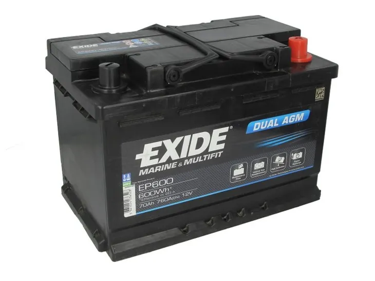 Nazwa towaru: AKUMULATOR EXIDE 12V 70AH/760A DUAL AGM, MARINE/RV (P+ BIEGUN STANDARDOWY) 278X175X190 B13 (AGM)