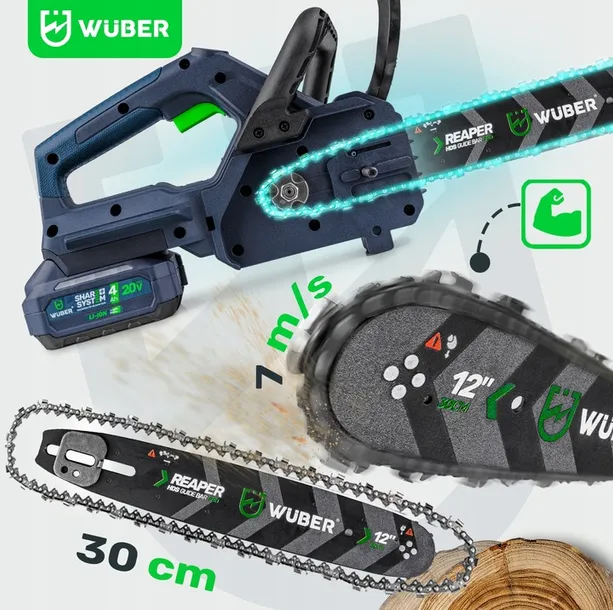 Ta akumulatorowa piła łańcuchowa Wuber z systemem Share + System wyróżnia się zaawansowaną konstrukcją i precyzyjnym wykonaniem, oferując silnik bezszczotkowy, który zapewnia wyjątkową wydajność. Z prędkością łańcucha do 7 m/s i automatycznym smarowaniem, umożliwia płynne cięcie gałęzi i drewna, gwarantując niezawodność w każdej zadaniu.