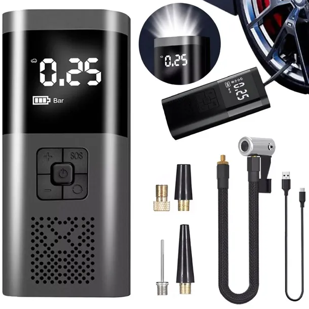 ?️ Bezprzewodowa, mocna, z LED i powerbankiem! Wybierz elektryczną pompkę akumulatorową 150 PSI ze smart-manometrem, cyfrowym wyświetlaczem LCD, oświetleniem LED/USB i dużą baterią 6000mAh. Zawsze gotowa, kiedy musisz dopompować koło - w podróży, na wakacjach, na motocyklu, rowerze i w aucie. Plug&play + auto-stop po osiągnięciu ciśnienia = szybciej, bezpieczniej, wygodniej.
