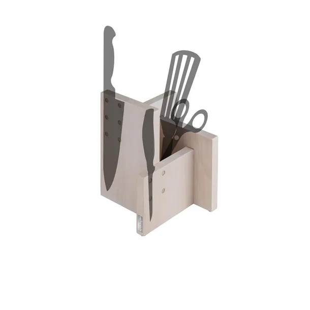 Stojak może pomieścić 8 noży o maksymalnej długości ostrza 24.5 cm. Ścianki służą do przechowywania noży, zaś środek jest pojemnikiem na najczęściej używane przez Ciebie przybory kuchenne.