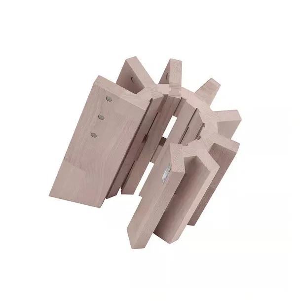 Stojak może pomieścić 8 noży o maksymalnej długości ostrza 28.5 cm. Wykonany z litego drewna bukowego, to nie tylko wspaniałe połączenie estetyki i trwałości, ale także wyraz oddania dla środowiska naturalnego. Całkowicie nadające się do recyklingu drewno gwarantuje, że Twoje wybory będą zgodne z wartościami zrównoważonego rozwoju. Blok jest starannie pokryty bezpiecznym dla żywności olejem, który nadaje mu gładką fakturę, doskonałą hydrofobowość i odporność na uporczywe plamy.