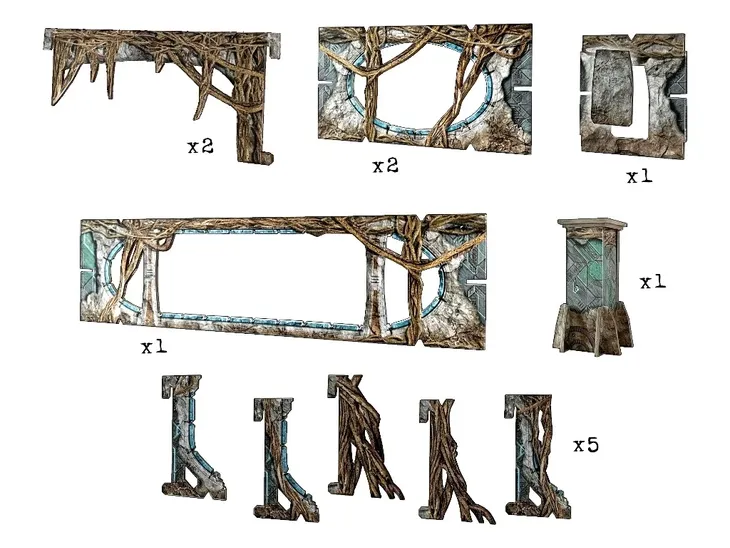 Ten pakiet zawiera dodatkowe wejścia i akcesoria z zestawu Alien Catacombs Set/Core Space First Born Starter Set do budowania większych obszarów gier.