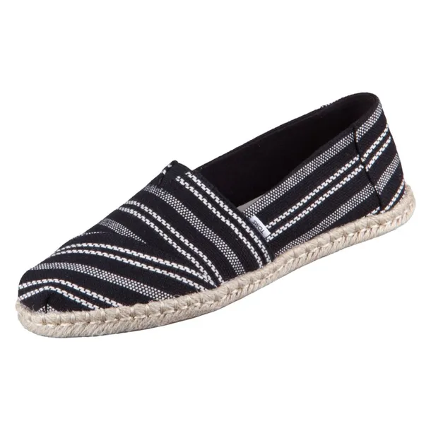 Espadryle marki Toms. Cholewka modelu została wykonana z materiału tekstylnego. Wkładka OrthoLite® Eco LT Hybrid zapewnia lekką amortyzację i wygodę, dodatkowo została wykonana z materiałów pochodzenia roślinnego i z recyklingu. Gumowa podeszwa zewnętrzna zwiększa przyczepność do podłoża.
