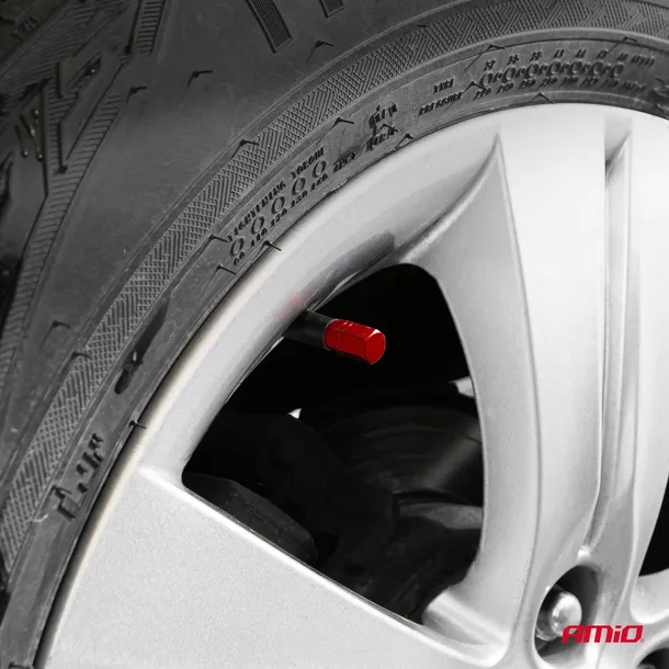 Aluminiowe nakrętki na wentyle kapturki czerwone 4 szt AMIO-02238