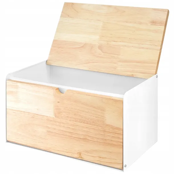 Praktyczny i duży chlebak z bambusowymi pokrywami, pozwalający na przechowywanie dużej ilości pieczywa, które zachowa świeżość na dłużej. Minimalistyczny oraz klasyczny skandynawski styl nadają chlebakowi designerskiego charakteru. Uniwersalne połączenie drewna i kremowej bieli sprawia, że będzie pasował do każdej kuchni. Chlebak można otworzyć na dwa sposoby, posiada on możliwość otwarcia pokrywy przedniej lub górnej, ewentualnie obu jednocześnie, co zdecydowanie ułatwia to wyjmowanie pieczywa.