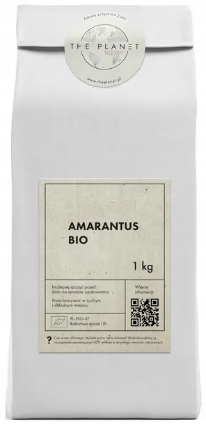 Ekologiczny amarantus jest jedną z najstarszych i najbardziej pożywnych roślin (pseudozbóż) uprawianych na świecie. Doskonały do porannej owsianki, do pieczenia chleba, ciast, zup i dań zbożowych.