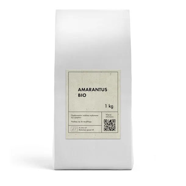 SKŁADNIKIekologiczny amarantus 100 %. OPISEkologiczny amarantus jest jedną z najstarszych i najbardziej pożywnych roślin (pseudozbóż) uprawianych na świecie. Doskonały do porannej owsianki, do pieczenia chleba, ciast, zup i dań zbożowych.SPOSÓB PRZYGOTOWANIAuprzednio wypłukane na gęstym sicie ziarno amarantusa gotować w proporcji 1:2 (1 porcja amarantusa na 2 porcje wody) ok. 20 min.WARTOŚĆ ODŻYWCZA W 100 gWartość energetyczna 1556 kJ/369 kcalTłuszcz 7,0 gw tym kwasy tłuszczowe nasycone 1,0 gWęglowodany 59 gw tym cukry 2,0 gBłonnik 7,0 gBiałko 14 gSól 0,01 g ZALECANE WARUNKI PRZECHOWYWANIAPrzechowywać w suchym i chłodnym miejscu.