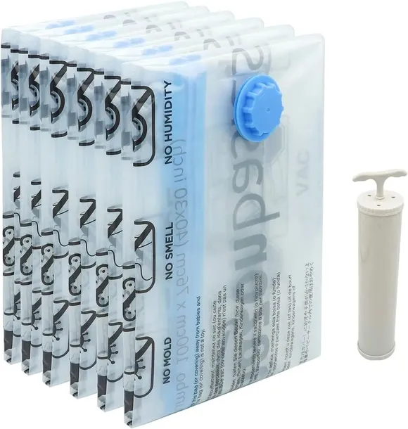 kompresuje obszerne tekstylia, ubrania, pościel i wiele więcej z redukcją rozmiaru o 80%