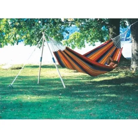 Estetyczne wykonanie hamaka w żywych, tropikalnych kolorach oraz solidny, stalowy stojak Sumo Grande malowany proszkowo tworzą spójny i stylowy zestaw, przenoszący Cię na bajeczne, egzotyczne wyspy i niebiańskie plaże.