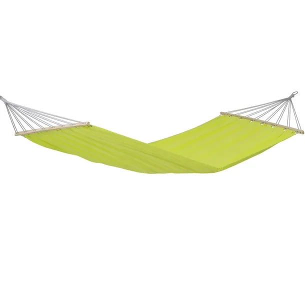 Duży hamak, zakończony z obu stron drążkami usztywniającymi. Hamak jest bardzo wygodny, wykonany został z 80% recyklingowanej bawełny oraz 15% poliestru. Hamak można zawiesić na trzy możliwe sposoby: - hamak do zawieszenia na drzewie (mocowanie na linie Amazonas Smartrope) - hamak do zawieszenia o scianę (mocowanie na hakach Easy+) - hamak do zawieszenia na stelażu Parametry techniczne: Skład: 80% organiczna bawełna, 20% poliester Długość całkowita: około 320 cm, długość drążka około 110 cm Powierzchnia do leżenia: około 220 x 120 cm Maksymalny udźwig: 150 kg Waga produktu: 2,2 kg