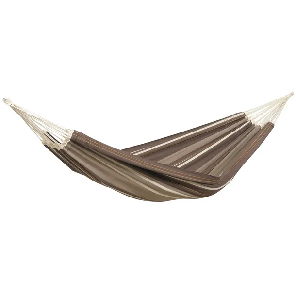 Wybierz niebiański relaks w jednym z najobszerniejszych hamaków na świecie! Powierzchnia leżenia Paradiso to 175 cm na 250 cm! To zdecydowanie hamak XXL, może być używany przez więcej niż 1 osobę. Dla wzmocnienia utkany został z 5000 nici z bardzo wytrzymałej i zarazem super miękkiej przędzy. Grube linki połączone zostały specjalną taśmą, co znacznie zwiększa wytrzymałość hamaka oraz pomaga w równomiernym rozłożeniu ciężaru. Piękna kolorystyka, tak charakterystyczna dla kraju, w którym ten hamak powstał - dla Brazylii! Hamak można zawiesić na trzy możliwe sposoby: - hamak do zawieszenia na drzewie (mocowanie na linie Amazonas Smartrope) - hamak do zawieszenia o ścianę (mocowanie na hakach Easy+) - hamak do zawieszenia na stelażu Akcesoria do zawieszenia hamaka (nie są w zestawie z hamakiem): - Lina Amazonas Smartrope - Hak Amazonas Easy+ Polecamy montowanie hamaków Paradiso na Arcus, Troja, Sumo Grande (zdjęcia poniżej). Producent gwarantuje najwyższą jakość i wytrzymałość materiału. Produkt pakowany jest w piękny worek wykonany z tego samego materiału co hamak. Parametry techniczne: * Rozmiar: XXL * Powierzchnia siedzenia: około 250 x 175 cm * Długość całkowita: około 360 cm * Waga produktu: około 2,5 kg * Maksymalne obciążenie: około 200 kg