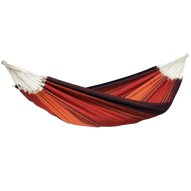 Wybierz niebiański relaks w jednym z najobszerniejszych hamaków na świecie! Powierzchnia leżenia Paradiso to 175 cm na 250 cm! To zdecydowanie hamak XXL, może być używany przez więcej niż 1 osobę. Dla wzmocnienia utkany został z 5000 nici z bardzo wytrzymałej i zarazem super miękkiej przędzy. Grube linki połączone zostały specjalną taśmą, co znacznie zwiększa wytrzymałość hamaka oraz pomaga w równomiernym rozłożeniu ciężaru. Piękna kolorystyka, tak charakterystyczna dla kraju, w którym ten hamak powstał - dla Brazylii! Hamak można zawiesić na trzy możliwe sposoby: - hamak do zawieszenia na drzewie (mocowanie na linie Amazonas Smartrope) - hamak do zawieszenia o ścianę (mocowanie na hakach Easy+) - hamak do zawieszenia na stelażu Akcesoria do zawieszenia hamaka (nie są w zestawie z hamakiem): - Lina Amazonas Smartrope - Hak Amazonas Easy+ Polecamy montowanie hamaków Paradiso na Arcus, Troja, Sumo Grande (zdjęcia poniżej). Producent gwarantuje najwyższą jakość i wytrzymałość materiału. Produkt pakowany jest w piękny worek wykonany z tego samego materiału co hamak. Parametry techniczne: * Rozmiar: XXL * Powierzchnia siedzenia: około 250 x 175 cm * Długość całkowita: około 360 cm * Waga produktu: około 2,5 kg * Maksymalne obciążenie: około 200 kg