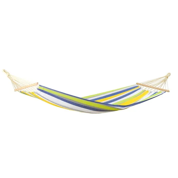 Niewielki, ale bardzo wygodny hamak niemieckiej marki Amazonas. Dzięki długimi sznurkom i obszernemu siedzisku nawet mały hamak może być komfortowy i bardzo praktyczny! Hamak można zawiesić na trzy możliwe sposoby: - hamak do zawieszenia na drzewie (mocowanie na linie Amazonas Smartrope) - hamak do zawieszenia o scianę (mocowanie na hakach Easy+) - hamak do zawieszenia na stelażu Parametry techniczne: Wymiary: długość: około 310 cm, poprzeczka: około 80 cm Powierzchnia do leżenia: około 200 x 100 cm Maksymalny udźwig: 120 kg, Waga produktu: około 1,5 kg