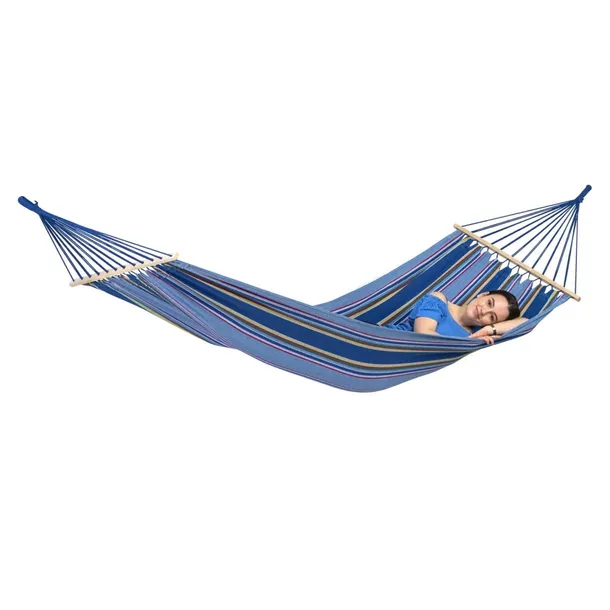 Niewielki, ale bardzo wygodny hamak niemieckiej marki Amazonas. Dzięki długimi sznurkom i obszernemu siedzisku nawet mały hamak może być komfortowy i bardzo praktyczny! Hamak można zawiesić na trzy możliwe sposoby: - hamak do zawieszenia na drzewie (mocowanie na linie Amazonas Smartrope) - hamak do zawieszenia o scianę (mocowanie na hakach Easy+) - hamak do zawieszenia na stelażu Parametry techniczne: Wymiary: długość: około 310 cm, poprzeczka: około 80 cm Powierzchnia do leżenia: około 200 x 100 cm Maksymalny udźwig: 120 kg, Waga produktu: około 1,5 kg