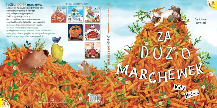 Jeden z najpopularniejszych picturebooków ostatniej dekady. Światowy bestseller.Pierwszy Tom serii „Za dużo marchewek”. Zabawna, pełna wdzięku iszalonych przygód, cudownie ilustrowana książka pokazuje, jak siła przyjaźni pomaga przetrwać trudne chwile wżyciu, nawetgdy po drodzespotykają nas niezbyt miłeniespodzianki. A dzielenie się zinnymi daje prawdziwą radość. Królik KOCHA marchewki! Kocha je tak bardzo, że w jego przytulnej norce zaczyna brakować miejsca dla niego. Przyjaciele proponują mu pomoc, Królik przyjmuje ją z radością. Ale czy mnóstwo marchewek nie oznacza mnóstwa kłopotów dla Królika i jego przyjaciół? Niepowtarzalny, kolorowy i radosny – wykreowany przez Katy Hudson – świat, w którym przyjaźń, umiejętność dzielenia się i współdziałania są najważniejsze, króluje w Amberku! A znacie też Żółwia, który chciał przespać zimę („Za dużo zimowych zabaw”), Wiewiórkę, która sama chciała wygrać wyścig („Wyścig po Złotego Żołędzia”) oraz Bobra, który chciał być perfekcyjny („Za doskonały tort urodzinowy”)? Tych samych bohaterów spotykamy w „Śmiałym planie Jeża nieśmiałka” – to hit ostatniego sezonu! – gdzie autorka pokazuje, jak przyjaźń może pomóc pokonać nieśmiałość i zrealizować marzenia. Najnowszy tom – „Wielkie Zawody” – jest o tym, że jeśli chcemy wygrywać, nie wystarczą zdolności, predyspozycje i wiara w siebie. Bez ćwiczeń, uczenia się i pracy nikt nie zostanie mistrzem. A doznanie zawodu nie może zniechęcać, tylko być motywacją do doskonalenia swoich umiejętności.