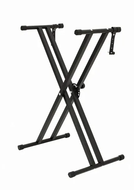 AMBRA X4 to podwójny uniwersalny i bardzo solidny, składany statyw klawiszowy pod keyboard, cyfrowe pianino lub syntezator. Stojak w całości wykonany został z podwójnych stalowych rurek i mocnych profilów. Pomalowano go proszkowo na kolor czarny, dzięki czemu jest odporny na zarysowania i rdzę. Posiada składaną konstrukcję krzyżową z 7-punktową regulacją wysokości w zakresie od 30 do prawie 100 cm, co pozwala muzykowi grać zarówno w pozycji stojącej i siedzącej. Poprzeczki podtrzymujące instrument i nogi stojaka AMBRA X4 zakończone zostały gumowymi nakładkami. Dzięki nim klawisze pewnie leżą na swoim miejscu, a cała konstrukcja nie przesuwa się po podłożu. Po zakończeniu grania stelaż może być szybko złożony. Zajmuje wówczas mało miejsca, dzięki czemu łatwo się go transportuje i przechowuje. To solidny, w pełni profesjonalny, a jednocześnie stosunkowo tani statyw pod keyboard. Podwójny system rurek w stojaku daje dużą stabilność nawet przy cięższych instrumentach.