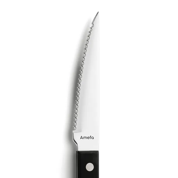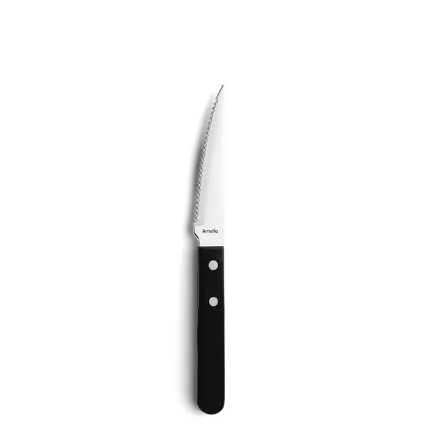 oraz estetyczny design to must have w każdej kuchni. Noże odpowiednio ząbkowane, idealne do krojenia pizzy, steków oraz warzyw. Rękojeść ebonitowa.Nadają się do zmywarki. Materiał stal 18/0 - nie zawiera niklu, nadal posiada silne właściwości antykorozyjne.