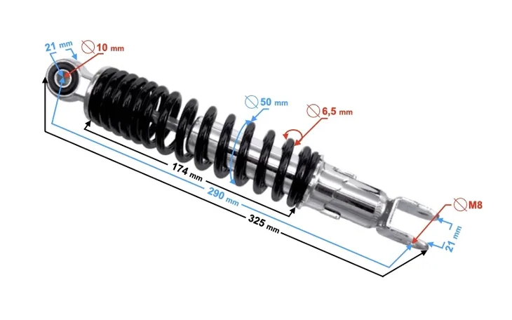 - długość całkowita amortyzatora: 325 mm