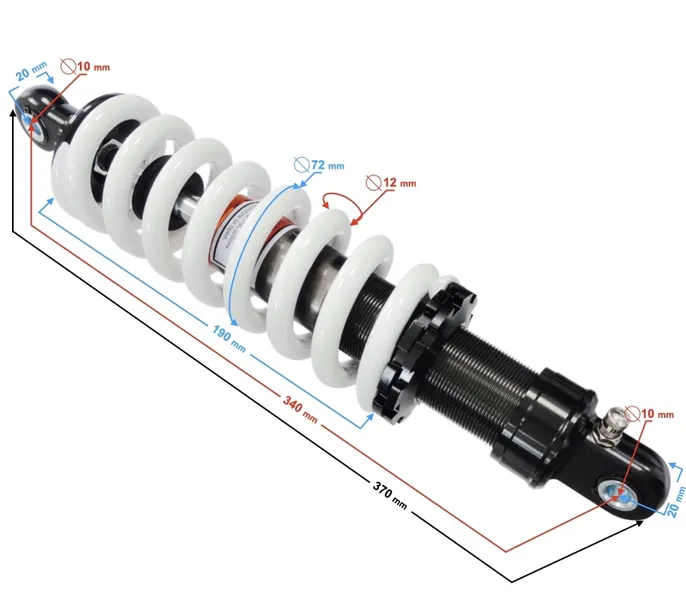 - całkowita długość amortyzatora: 370 mm