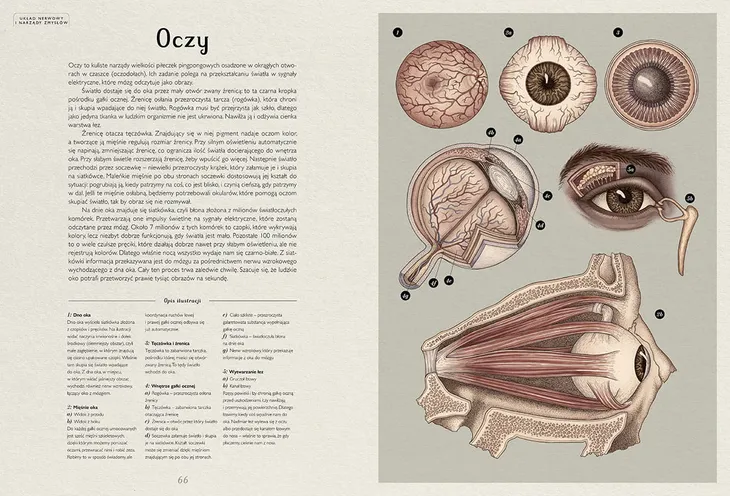 Witajcie w Muzeum Anatomii. Dzięki tej książce zajrzycie do środka nieprawdopodobnie złożonego mechanizmu, jakim jest ciało człowieka. Poznacie budowę jego komórek, tkanek, organów i układów oraz przebieg zachodzących w nim procesów, takich jak trawienie i oddychanie. Dowiecie się, ile krwi na dobę przepływa przez tętnice i żyły, co trzyma zęby na miejscu, dzięki czemu możemy robić miny, jak powstaje głos i co ucho ma wspólnego z równowagą. Prześledzicie przebieg ciąży i dojrzewania, odkryjecie, jak działają mózg, żołądek i serce.