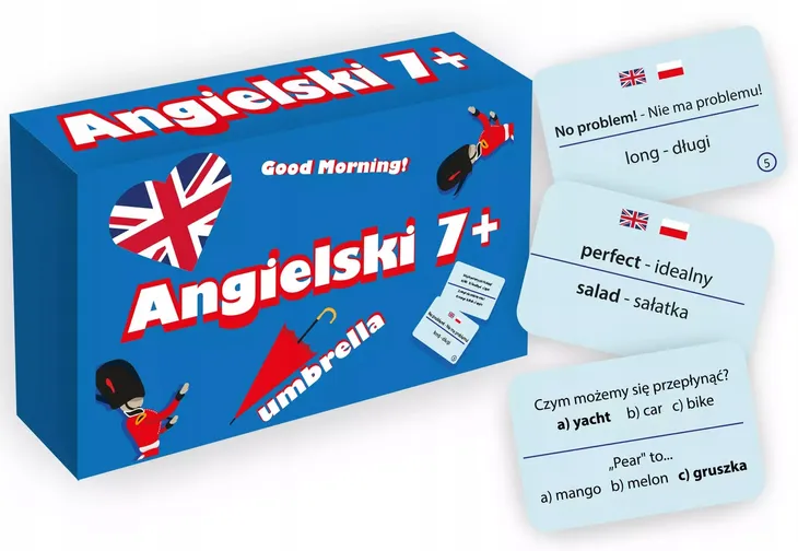 Angielski 7+ to wciągająca gra edukacyjna, która pomaga dzieciom w nauce języka angielskiego poprzez aktywną zabawę! Rozgrywka polega na poznawaniu nowych słówek oraz odpowiadaniu na pytania związane z ich znaczeniem, co skutecznie rozwija umiejętności językowe. Gra angażuje dzieci do samodzielnego myślenia, utrwala zdobytą wiedzę i zachęca do używania angielskiego w praktyce. Proste zasady oraz różnorodne pytania sprawiają, że nauka staje się przyjemnością i świetnym sposobem na wspólne spędzanie czasu. Angielski 7+ to doskonały wybór dla rodziców i nauczycieli, którzy chcą wspierać rozwój językowy dzieci w ciekawy i skuteczny sposób.