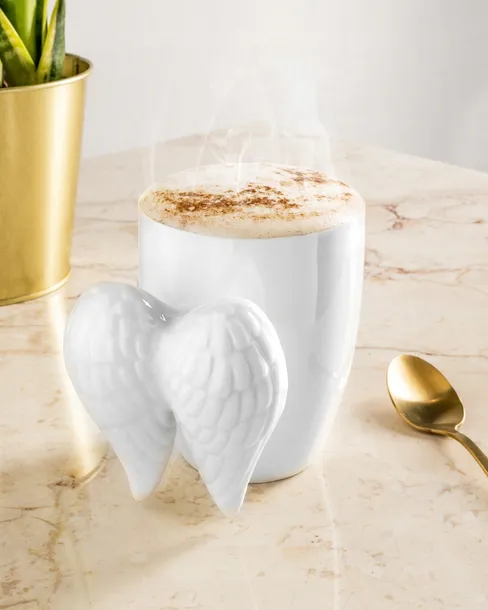 Piękny i wyjątkowy kubek z anielskimi skrzydłami. Możesz go podarować osobie bliskiej Twojemu sercu lub komuś, kto potrzebuje wsparcia, jak opieki anioła. Podobno ten odlotowy i uskrzydlony kubek jest również świetnym prezentem dla tych, którzy wymagają od nas anielskiej cierpliwości ;) Niezależnie od wszystkiego kubek jest naprawdę wyjątkowo piękny i bez wątpienia sprawi radość obdarowanej osobie.