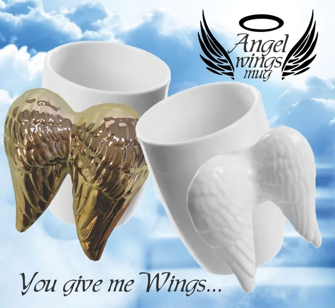 - piękny kubek ze skrzydłami anioła