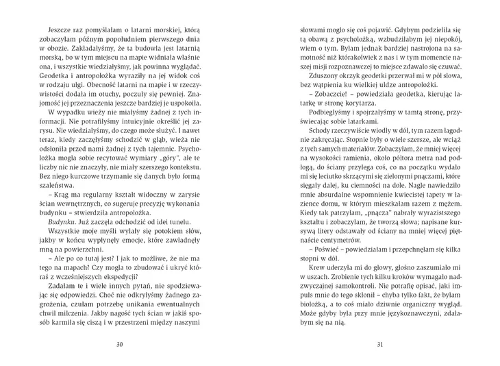 Rząd strzeże dostępu do strefy X Strefa X jest jak nowotwór, który powoli zajmuje całą planetę. Każda z wysłanych do niej jedenastu wypraw badawczych kończyła się śmiercią albo szaleństwem jej uczestników. Dwunasta ma być inna. Do Strefy X docierają cztery kobiety. Obserwują, jak postapokaliptyczny pejzaż wchłania wszystko, co żyje. Roślinność wdziera się do opuszczonych domów. Organizmy mutują i krzyżują się ze sobą, powołując do życia nowe, nieznane dotąd formy. Najbardziej tajemnicza okazuje się wieża, która zamiast piąć się do góry, ciągnie się w dół. Podziemne schody wabią badaczki coraz głębiej – tam, gdzie serce wieży zaczyna pulsować, a na ścianach pojawiają się fosforyzujące, tętniące dźwiękiem słowa. Czy uda się wyjaśnić ich znaczenie, zanim Strefa X pochłonie wszystko? Co jest tutaj prawdą, a co tylko halucynacją?