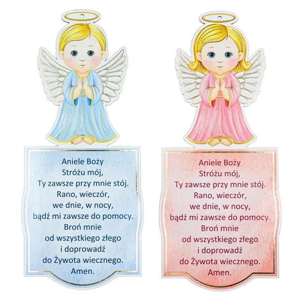 Obrazek na desce z dziurką do zawieszenia na ścianie, z modlitwą Aniele Boży Stróżu mój.......