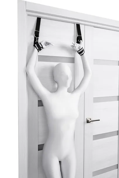 Plastikowe cylindry mocowane są za drzwiami, a kajdanki zapinane są na nadgarstkach za pomocą regulowanego zapięcia na rzep. Dzięki regulowanym paskom kajdanki pasują na każdy rozmiar nadgarstka, zapewniając komfort i idealne dopasowanie. Miękkie wnętrze kajdanek eliminuje dyskomfort, nawet przy dłuższym użytkowaniu.