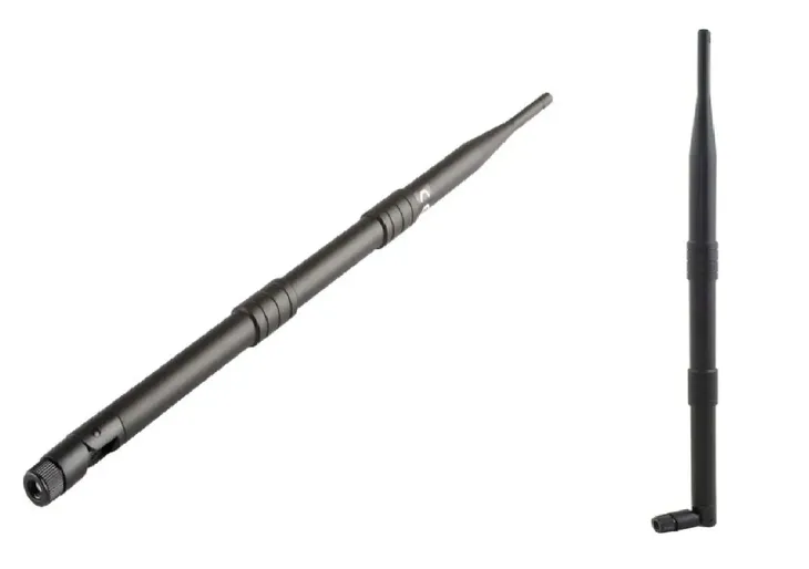 Dookólna antena pokojowa (wewnętrzna). Idealnie nadaje się do zwiększenia zasięgu domowej sieci. Można ją stosować zarówno do kart radiowych jak i AP. Posiada złącze RP-SMA, a dzięki uniwersalnej konstrukcji pozwala na uzyskanie 300-400% większego zasięgu/siły sygnału w porównaniu ze standardową 2-3 dBi anteną montowaną seryjnie w AP, routerach, kartach PCI oraz USB. Idealna w przypadku trudności z uzyskaniem stabilnego połączenia. Antena patykowa dookólna 360° 9~12dBi 2.4GHz wkręcana bezpośrednio do kart bezprzewodowych oraz Access Pointów ze złączką RP-SMA. Antena może być wykorzystywana w urządzeniach aktywnych (Access Point, karta bezprzewodowa PCI lub USB), jak i w komputerach przenośnych, wyposażonych w karty ze złączem RP-SMA.