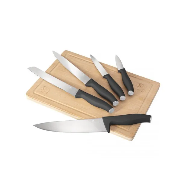 Zestaw 5 noży z bambusową deską do krojenia firmy BERLINGER HAUS z serii Antracit Collection.