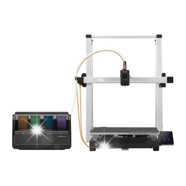 Dzięki funkcji wykrywania splątań z wykorzystaniem sztucznej inteligencji Kobra 3 Max natychmiast zatrzymuje druk w przypadku problemu z filamentem. System automatycznego doładowania i inteligentnego suszenia materiału zapewnia optymalne warunki dla każdego wydruku, a możliwość drukowania w 4 lub 8 kolorach (drugi system ACE Pro w oddzielnej sprzedaży) pozwala na realizację bardziej złożonych projektów.