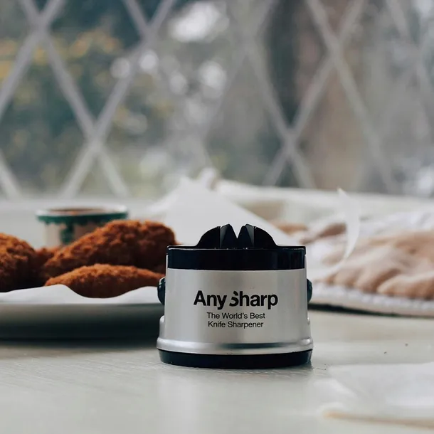 Najlepsza ostrzałka do noży Classic firmy AnySharp, która jest dziecinnie prosta w użyciu. Po prostu przyssij ją do blatu. Jest co prawda niewielkich rozmiarów, ale niech Ciebie to nie zwiedzie. Posiada płytki ostrzące wykonane z węglika wolframu, korpus jest wykonany z wytrzymałego tworzywa. Dzięki ostrzałce Classic możesz naostrzyć noże gładkie i ząbkowane np. nóż do chleba, nierdzewne i ze stali węglowej, tytanowe oraz wszelkiego rodzaju finki, scyzoryki, tasaki, noże myśliwskie, siekiery. Nie należy stosować przy nożach ceramicznych oraz z drobnymi ząbkami np. noże do steków. AnySharp to ostrzałka polecana przez najlepszych Szefów Kuchni na całym Świecie.