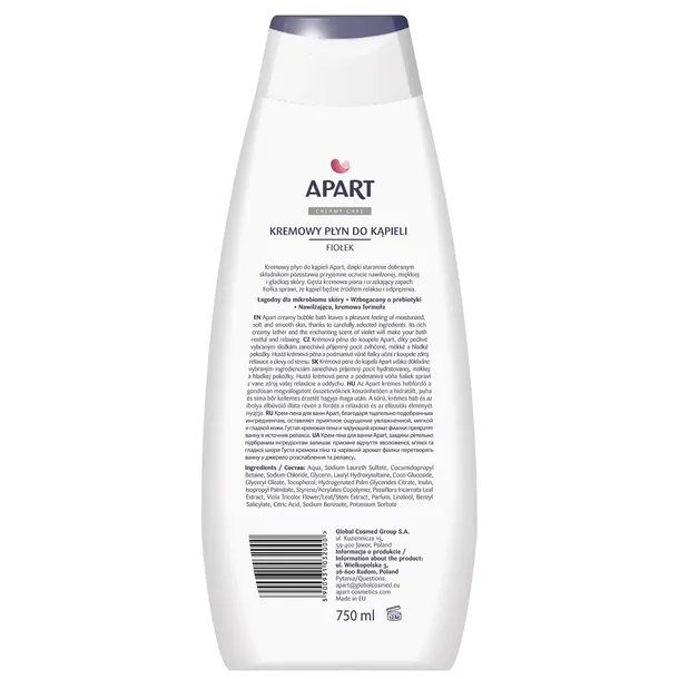 APART Kremowy płyn do kąpieli + prebiotyk FIOŁEK, 750 ml