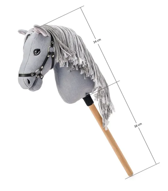 Prezentujemy siwego konika na patyku o zachwycającej urodzie. Wabi się Apollo, i jak przystało na konika o imieniu greckiego boga jest uroczy. Nasz hobby horse w kolorze szarym został starannie wykonany z miękkiego pluszu, co sprawia, że jest przyjemny w dotyku. Posiada wyjątkowe detale, takie jak realistycznie wykonane oczy i nos, które dodają mu charakteru. Ponadto posiada ogłowie i bujną dwukolorową grzywę, które dodają mu autentyczności. Rękojeść wykonana z litego kawałka drewna co znacznie wydłuża żywotność produktu i jego jakość.