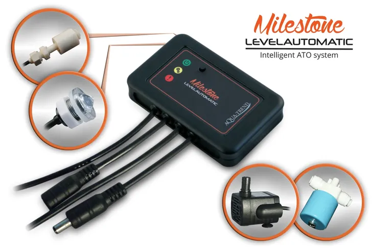 Levelautomatic Milestone to bardzo nowoczesne, mikroprocesorowe urządzenie przeznaczone do uzupełniania odparowanej wody w akwariach wyposażonych w system filtracji oparty o sump (zbiornik techniczny).