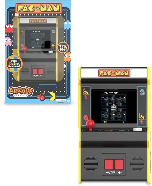Pac-Man to klasyczna gra arcade z 1980 roku, w której gracz kontroluje żółtą postać o nazwie Pac-Man, poruszającą się po labiryncie. Celem jest zjedzenie wszystkich punktów na planszy, unikając jednocześnie duchów, które próbują go schwytać. Po zjedzeniu specjalnych punktów, duchy stają się chwilowo słabsze, co pozwala Pac-Manowi je zjeść. Gra zdobyła dużą popularność i stała się jednym z najbardziej ikonicznych tytułów w historii gier komputerowych. Wymiary konsoli: 13 cm x 8,5 cm x 6,5 cm.