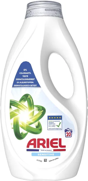Ariel Sensitive stworzony z myślą o osobach z wrażliwą skórą. Jego delikatna, ale skuteczna formuła została testowana dermatologicznie i nie zawiera barwników, dzięki czemu jest bezpieczny dla alergików i osób o wrażliwej skórze. Ariel Sensitive skutecznie usuwa plamy, zachowując przy tym miękkość i delikatność pranych ubrań.