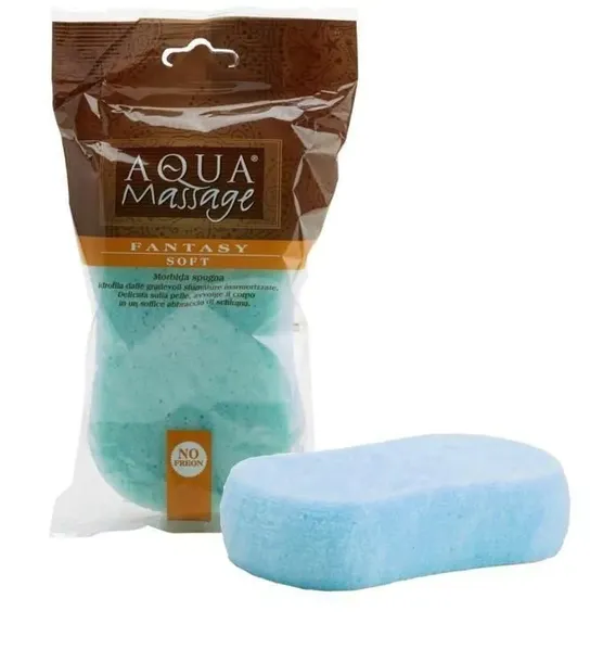 Miękka i delikatnie porowata, zaokrąglona gąbka do kąpieli. Dostępna w kolorach: niebieski,
