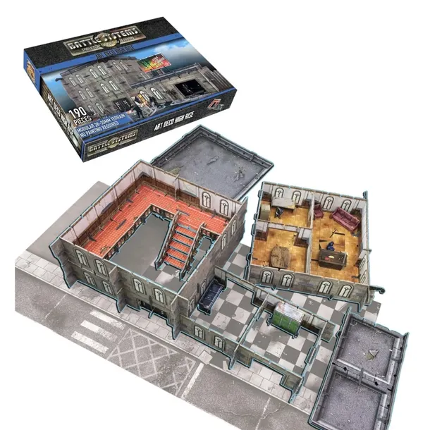 Ten pakiet zawiera wszystko, czego potrzebujesz, aby ulepszyć swój miejski stół do gier o ponadczasowy styl art-deco. Mieści wystarczająco dużo, aby zbudować okazały trzypiętrowy budynek lub wiele mniejszych konstrukcji, w tym majestatyczne wielopoziomowe wnętrza. Zestaw jest kompatybilny z każdym z miejskich zestawów podstawowych Battle Systems.