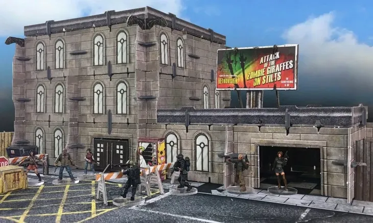Teren jest dostarczany w płaskim opakowaniu na wysokiej jakości karcie o dużej gęstości, zadrukowanej w pełnym kolorze po obu stronach, więc nie jest wymagane malowanie! Teren wymaga montażu, a niektóre mniejsze części będą wymagały kleju. Zapoznaj się z samouczkiem, aby uzyskać więcej informacji i pełne instrukcje.