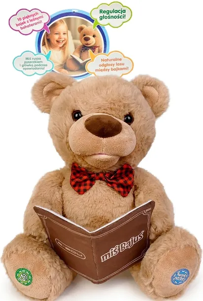 ✅ Miś opowiada 10 bajek ruszając przy tym pyszczkiem i głową.
