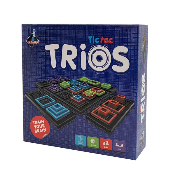 TRIOS to angażująca gra strategiczna dla dzieci, dorosłych i seniorów. Wystarczy ułożyć „TRIOS” – trzy klocki tego samego koloru i rozmiaru lub układ w rosnącej kolejności. Gra rozwija logiczne myślenie, spostrzegawczość i cierpliwość, wspierając rozwój umiejętności społecznych i intelektualnych. To idealna rozrywka na rodzinne wieczory, relaksująca zabawa dla dorosłych i trening umysłu dla seniorów. Z TRIOS każdy wiek to dobra zabawa – od 6 do 99 lat!