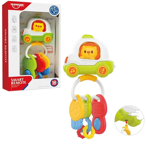 Kolorowy pilot do auta z kluczykami to interaktywna zabawka, która łączy w sobie efekty dźwiękowe, świetlne i sensoryczne. Idealna dla maluchów od 18. miesiąca życia, zachwyci realizmem i funkcjonalnością, przypominając prawdziwy pilot do otwierania auta.