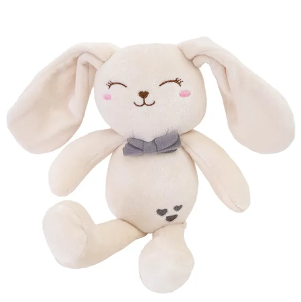 Ten uroczy króliczek na pewno skradnie serca dzieci od pierwszego przytulenia. Jest bardzo miły i mięciutki, a długie oklapnięte uszka i uśmiech tylko dodają mu uroku. Jest idealny również dla najmłodszych maluchów, bo nie ma żadnych szklanych oczek ani innych twardych lub niebezpiecznych części.