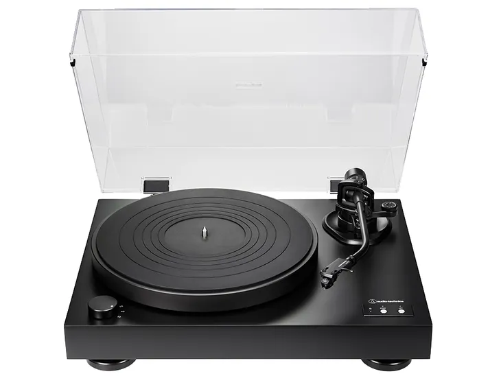Audio-Technica AT-LP8X to gramofon, który jest praktycznie gotowy do pracy od razu po wyjęciu z pudełka. W komplecie znajdują się niezbędne akcesoria ułatwiające korzystanie z urządzenia, takie jak kabel audio (RCA), adapter do płyt wymagających 45 obr./min oraz zdejmowana pokrywa przeciwpyłowa mocowana na zawiasach, zabezpieczająca gramofon i płyty przed zabrudzeniem.