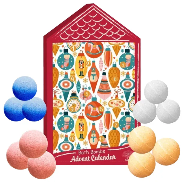AURORA Świąteczny Kalendarz Adwentowy Musujące Kule do kąpieli 12 x 30g Sól